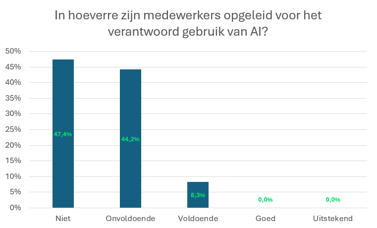 - Ontbrekende scholing: er zijn geen of beperkte AI-leerlijnen of opleidingsprogramma’s voor medewerkers.